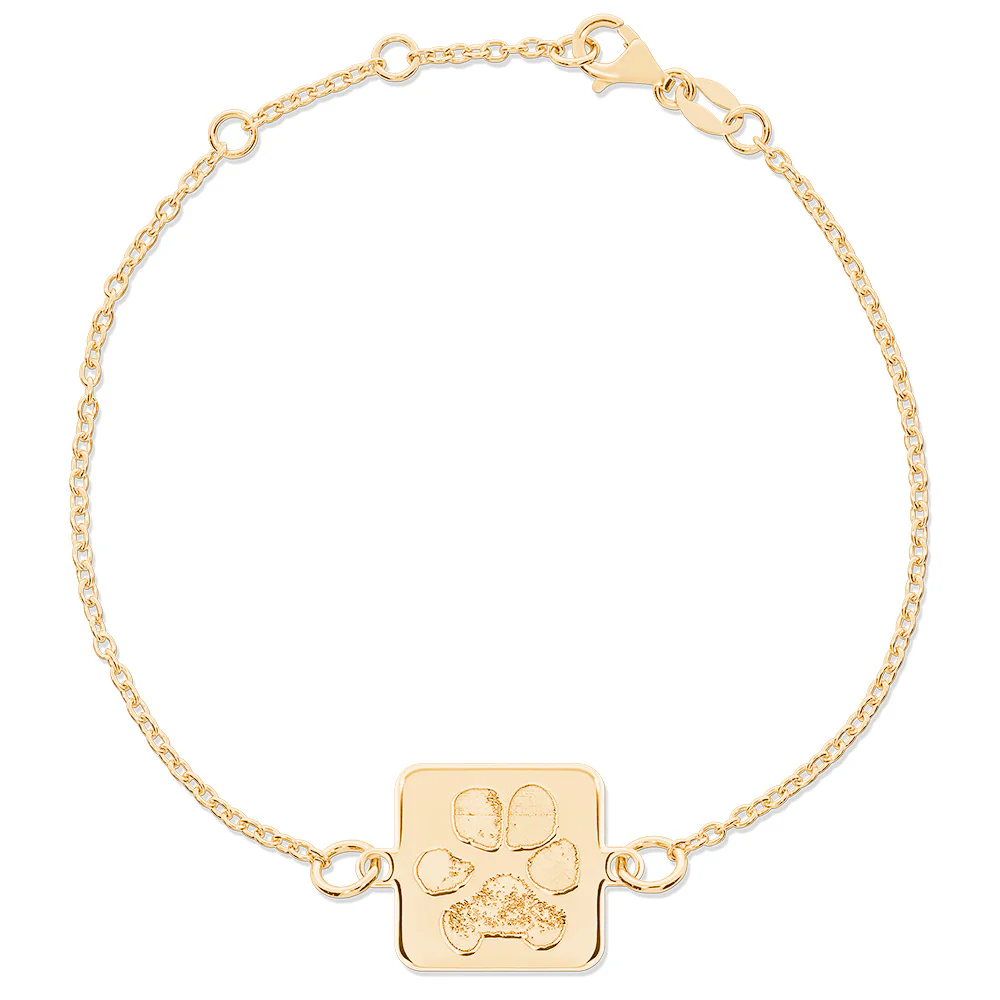 You will always have a reminder of your Loved One with you when you wear a custom 14k Yellow Gold Square Charm Bracelet. Engraved with the unique lines and grooves that make up your Loved One’s fingerprint pattern, your Bracelet includes a Cable Chain that can be adjusted to 6.5, 7, and 7.5 inch increments. Add a personalized inscription to that back for even more meaning.